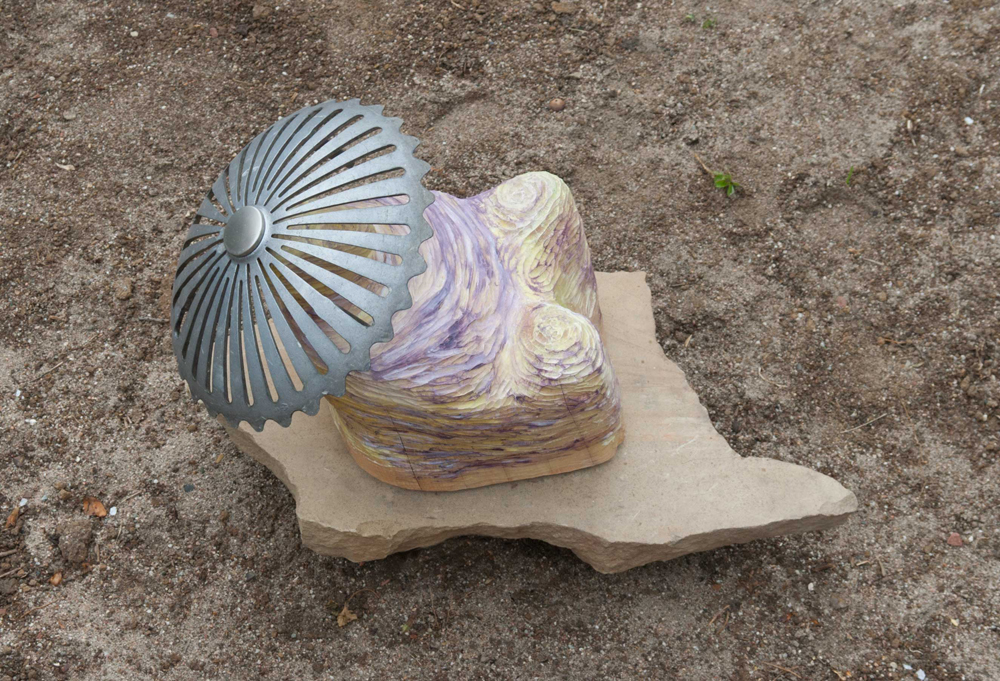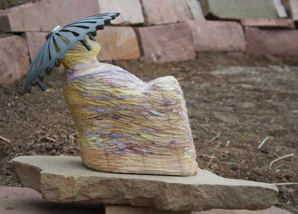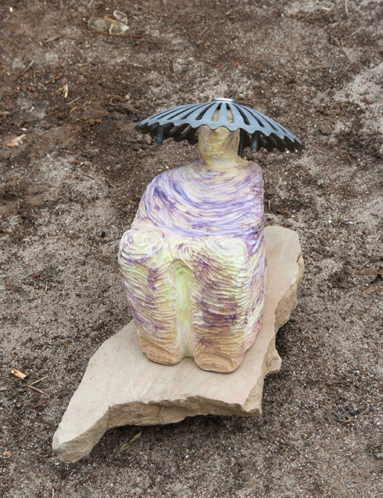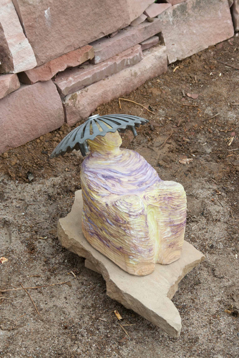 Mönch im Brunnen Linde, bemalt, Sandstein, Metall H 37 cm