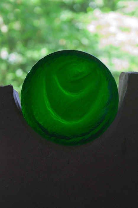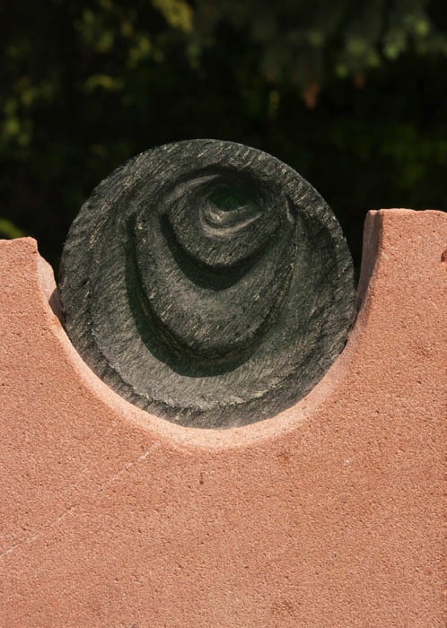Objekt Dallglas, Sandstein, Kiefer; H 48 cm